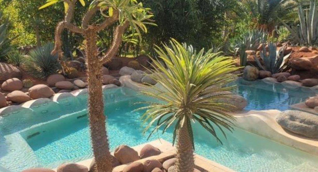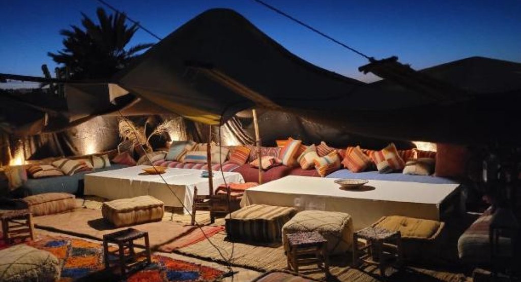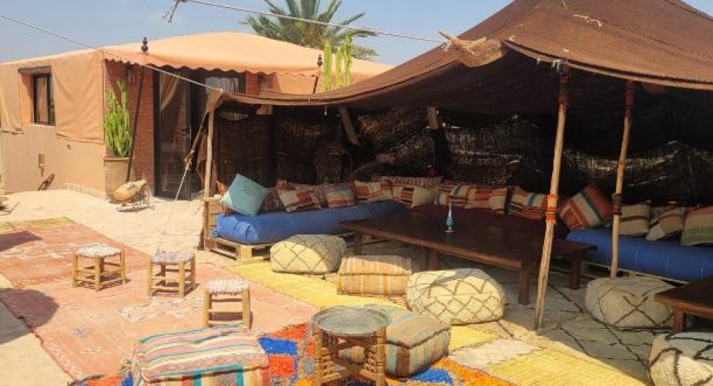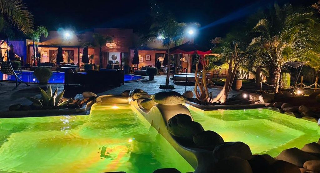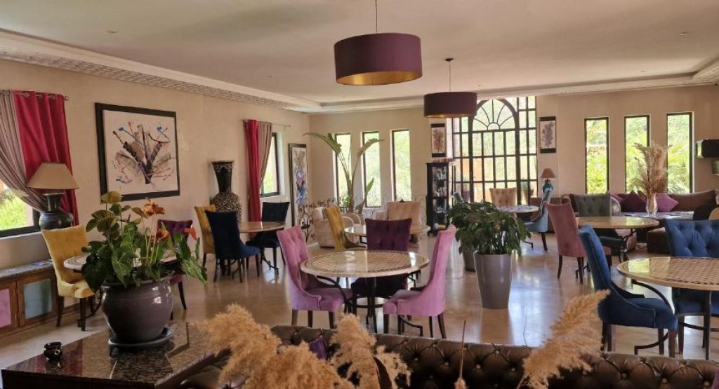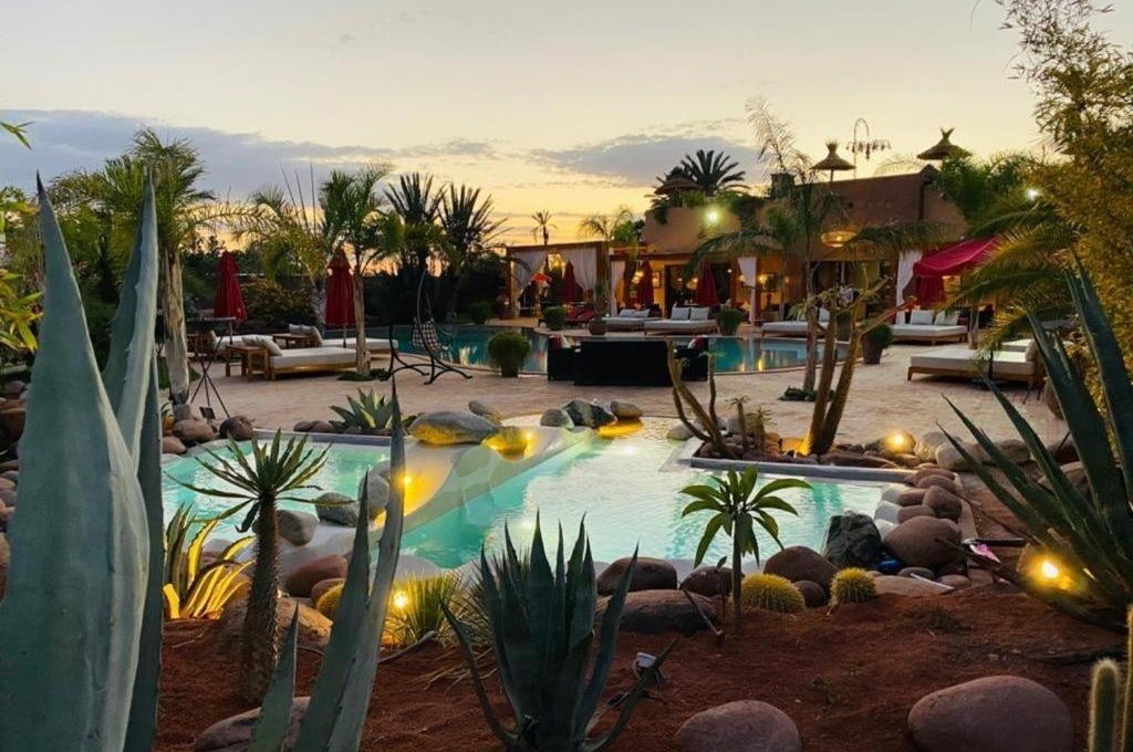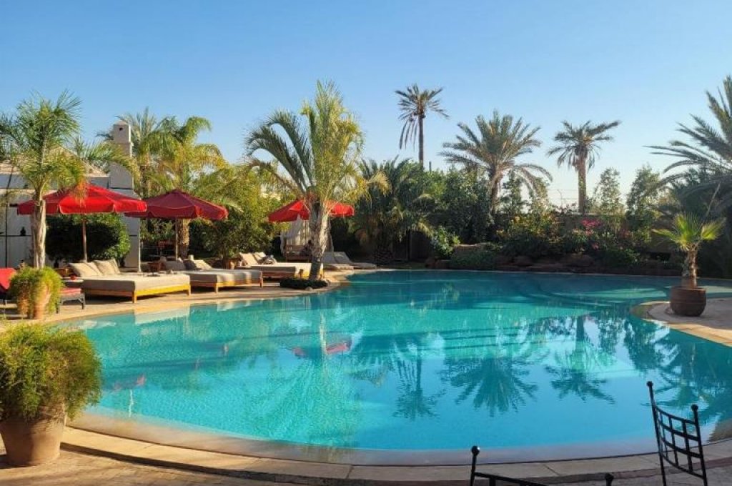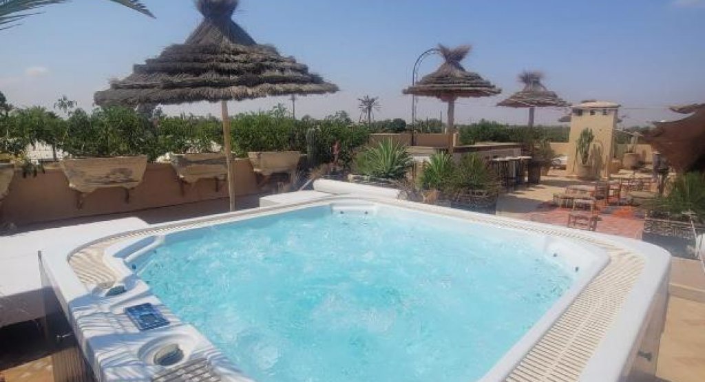 Located just 15 minutes from the center of Marrakech and Jemaa El Fna square, this Palmeraie haven of peace offers a refined retreat with panoramic views from its Berber roof terrace. The hotel offers elegant rooms, suites and lodges with private terraces, refined cuisine, a spa (massages and hammam), a 31°C Jacuzzi and a swimming pool with large deckchairs. Ideal for private events (weddings, celebrations, etc.), it can accommodate up to 40 people.